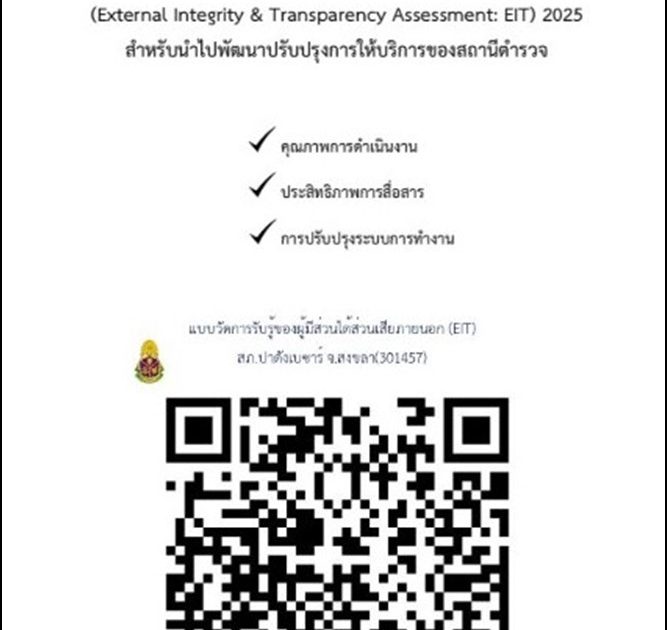 ขอเชิญชวน ผู้มารับบริการ/มาติดต่อ สถานีตำรวจ ร่วมจัดทำแบบวัดการรับรู้ของผู้มีส่วนได้เสียภายนอก EIT