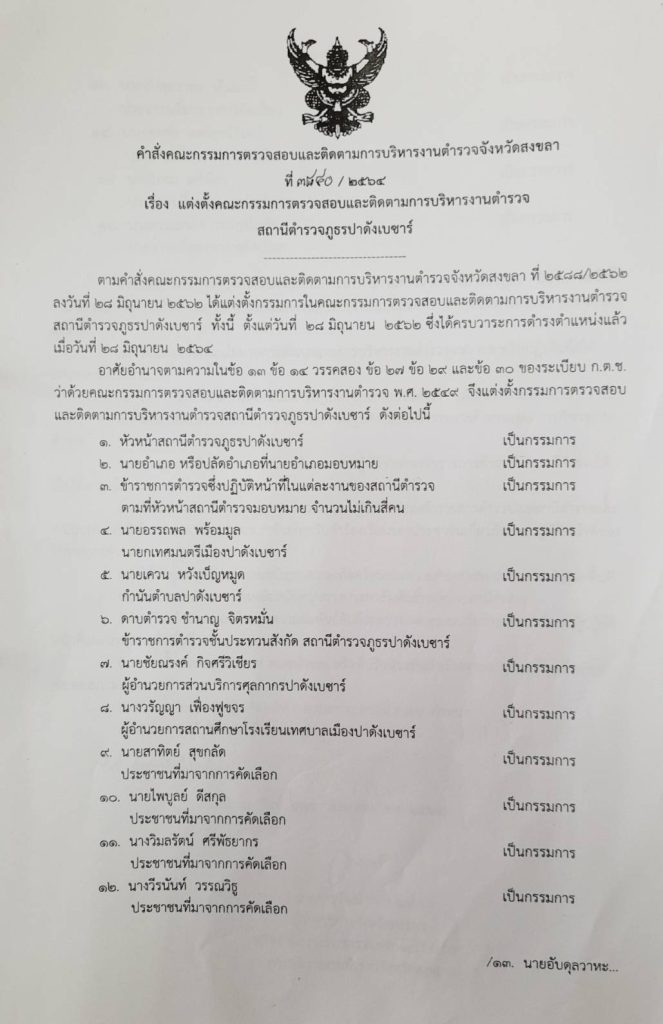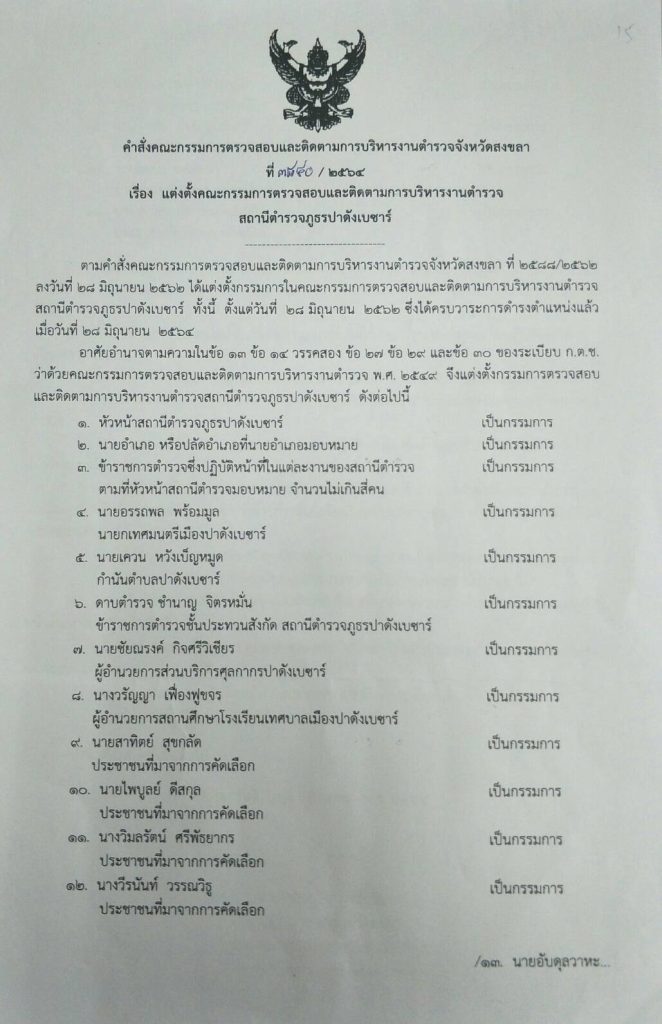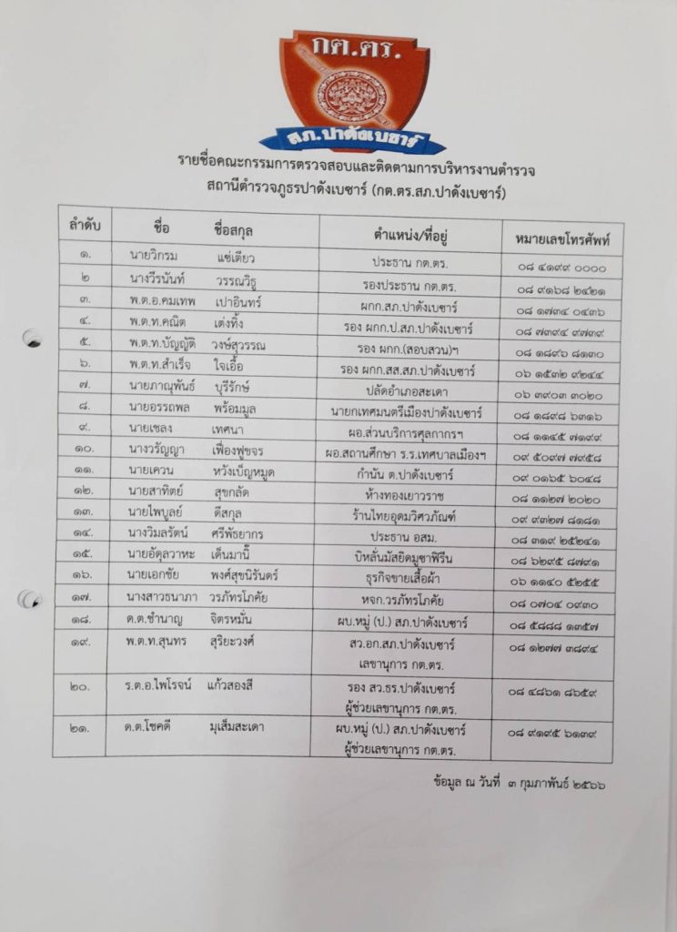 O4 ข้อมูลคณะกรรมการตรวจสอบและติดตามการบริหารงานตำรวจ (กต.ตร.) ของสถานีตำรวจ