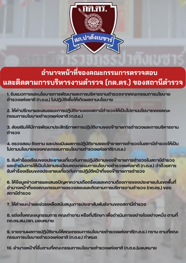 – บทบาท อำนาจหน้าที่คณะกรรมการตรวจสอบและติดตามการบริหารงานตำรวจของสถานีตำรวจ