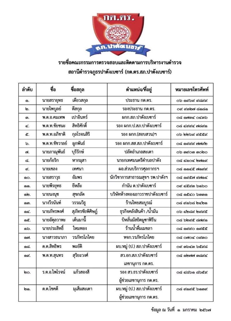 O4 ข้อมูลคณะกรรมการตรวจสอบและติดตามการบริหารงานตำรวจ(กต.ตร.) ของสถานีตำรวจ 2567
