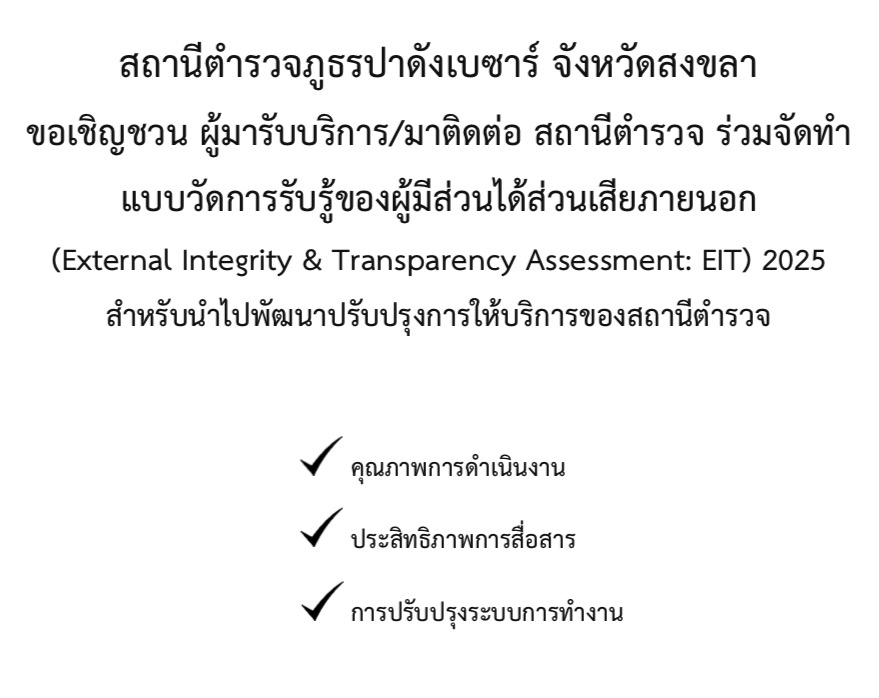 ประชาสัมพันธ์ข้อมูลการประเมินคุณธรรมและความโปร่งใสในการดำเนินงานของหน่วยงานภาครัฐของสถานีตำรวจ ประจำปีงบประมาณ 2568